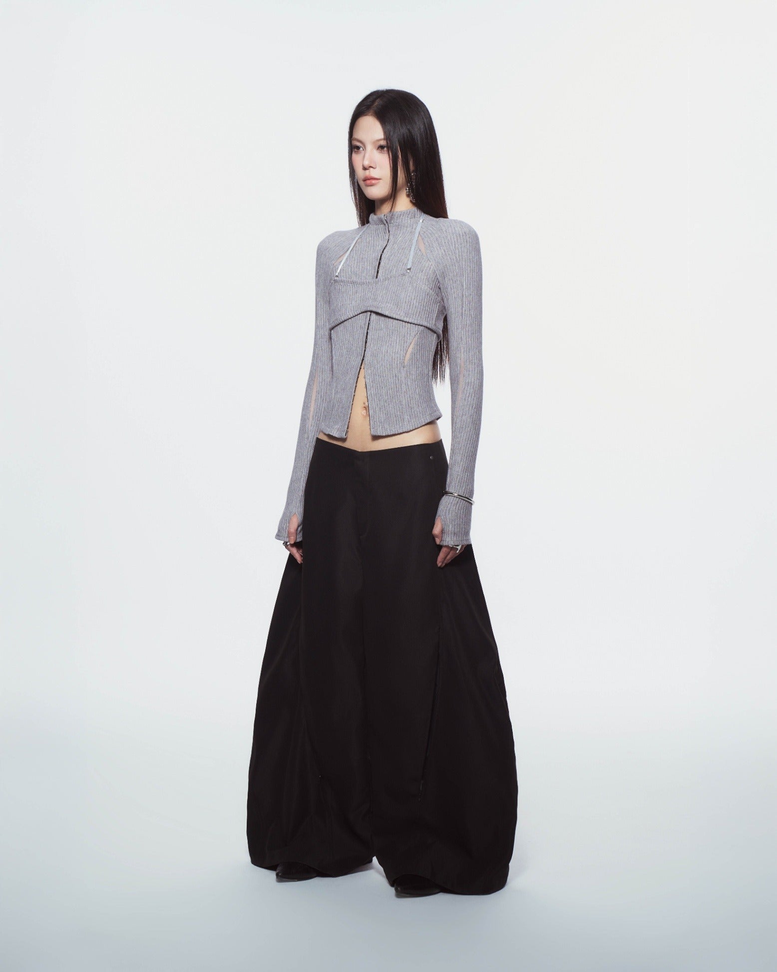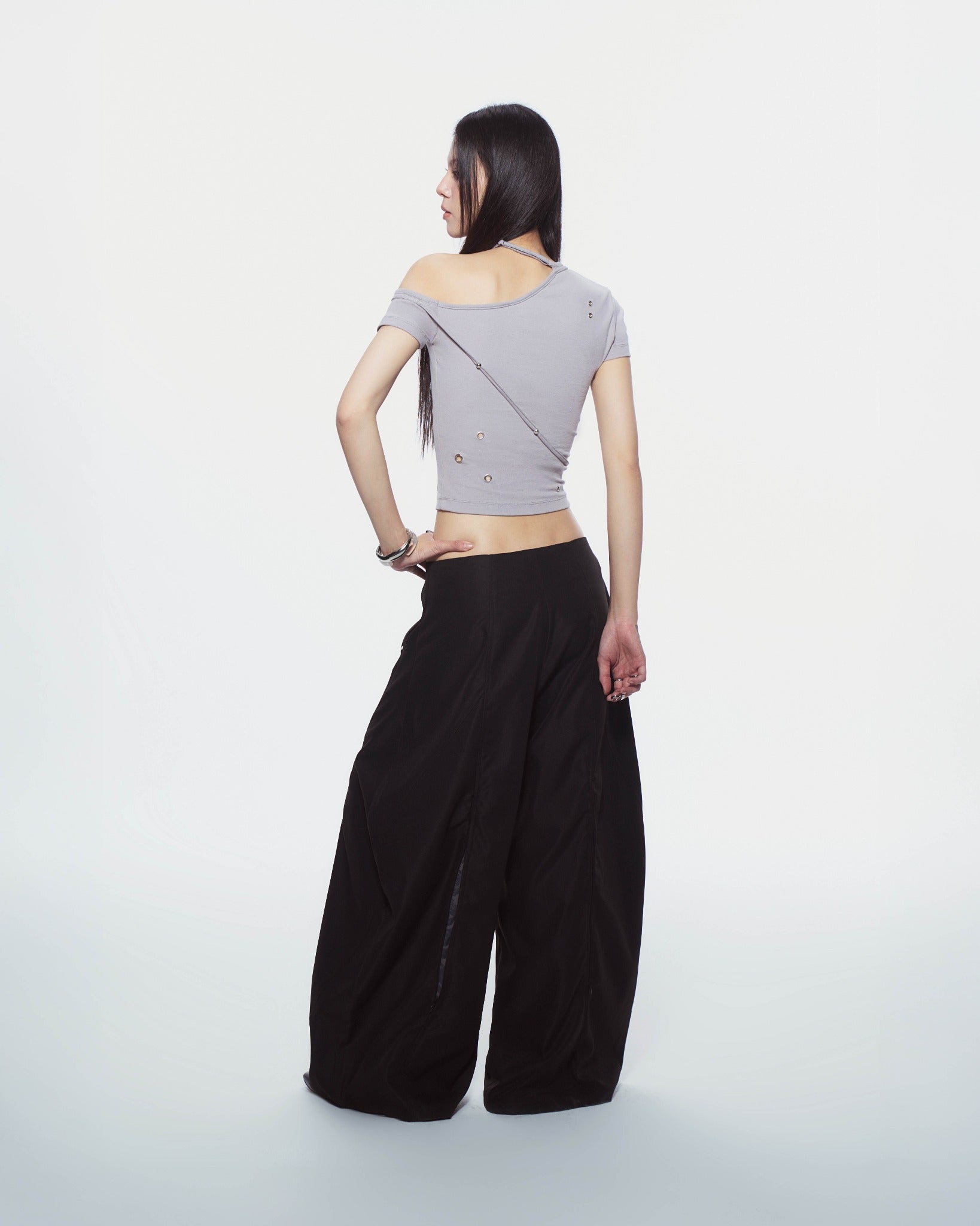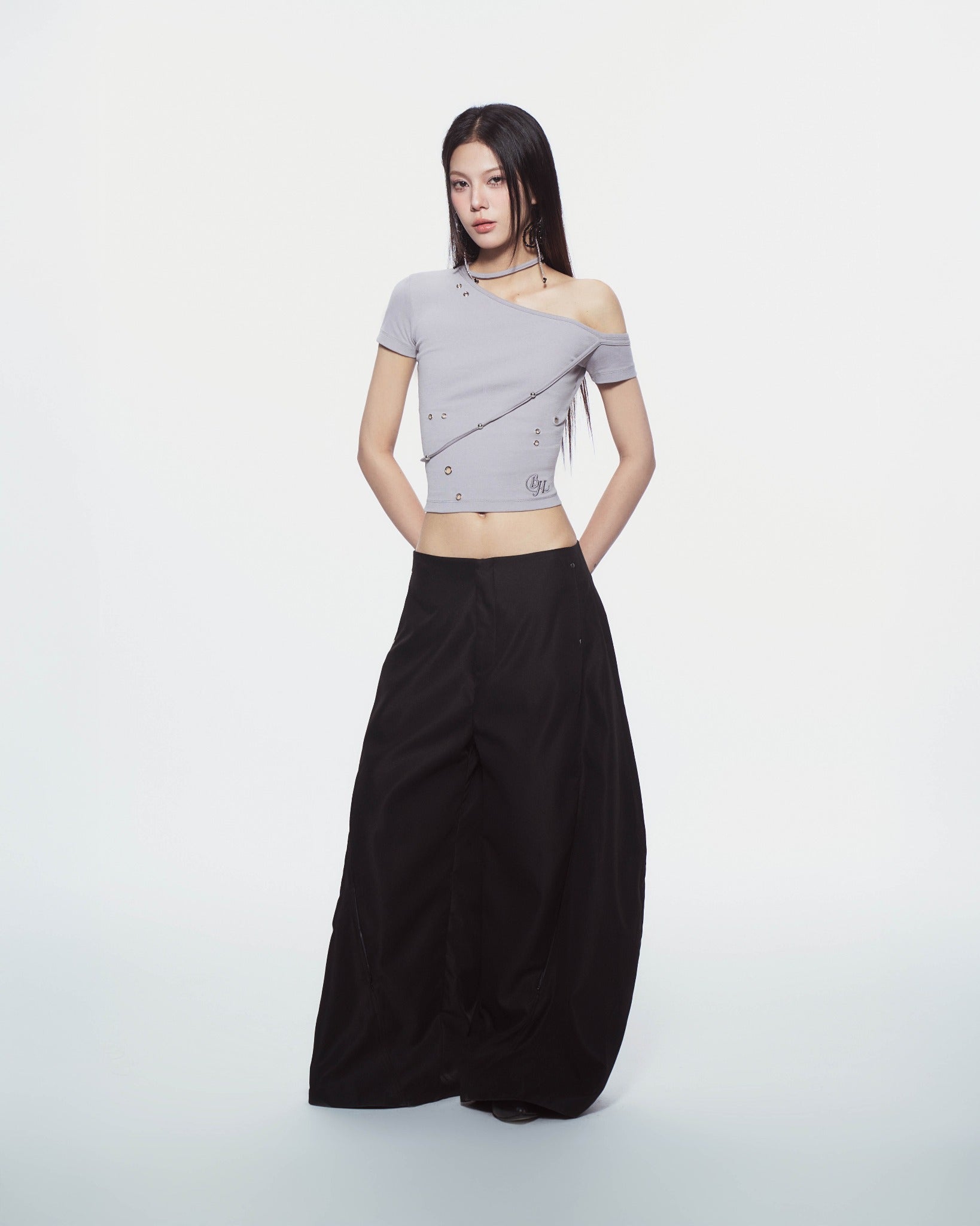 - 褲管隱藏拉鍊設計,拉開可改變版型