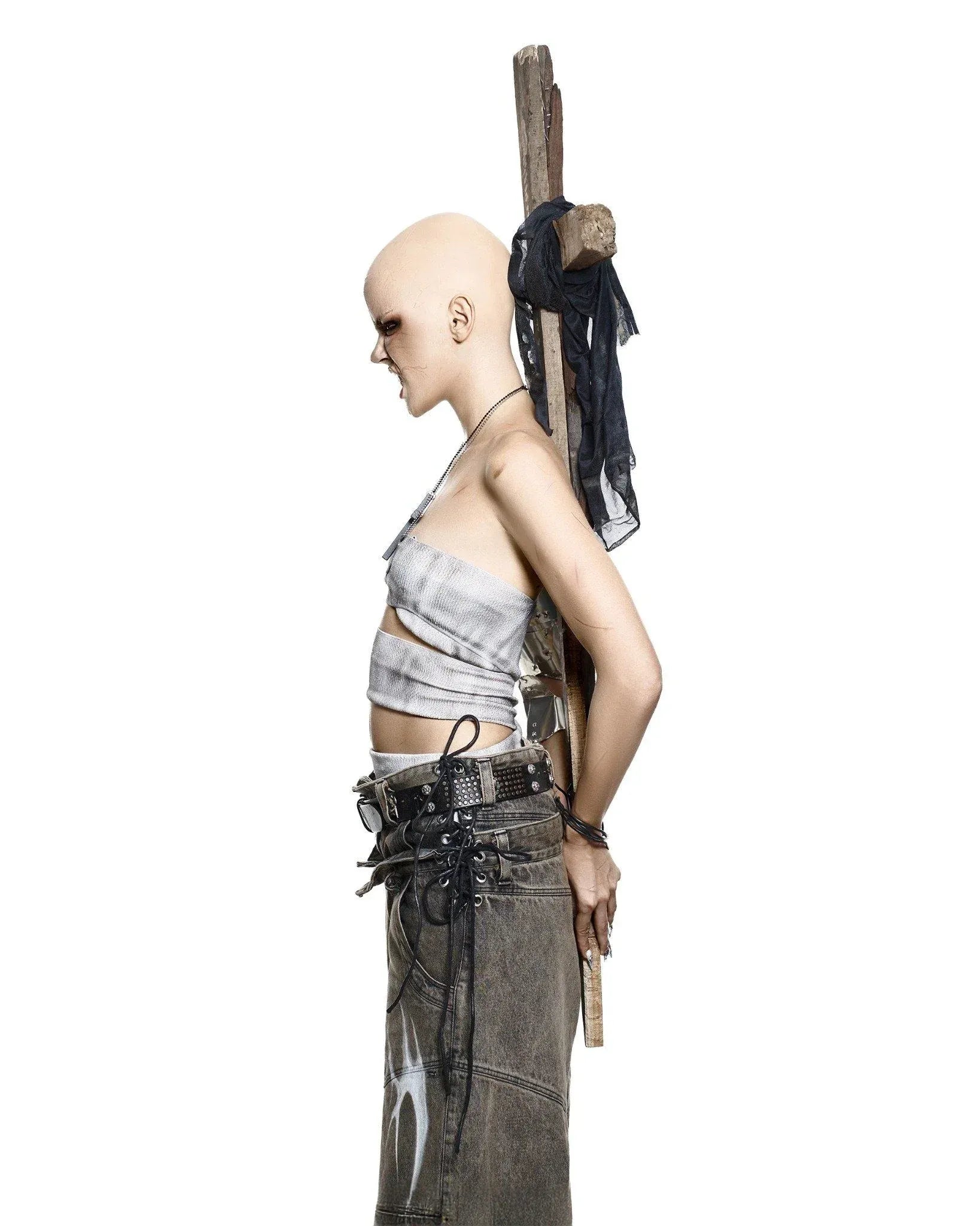 - 雙腰帶配有拉繩和金屬孔眼,可調整鬆緊。