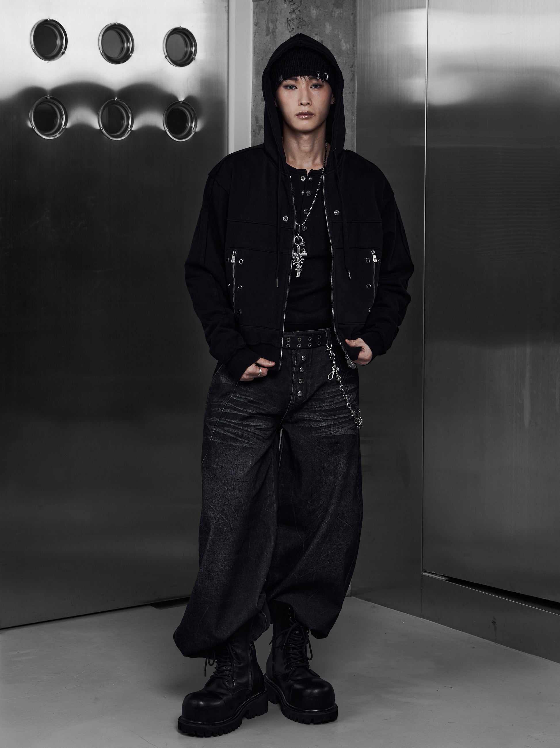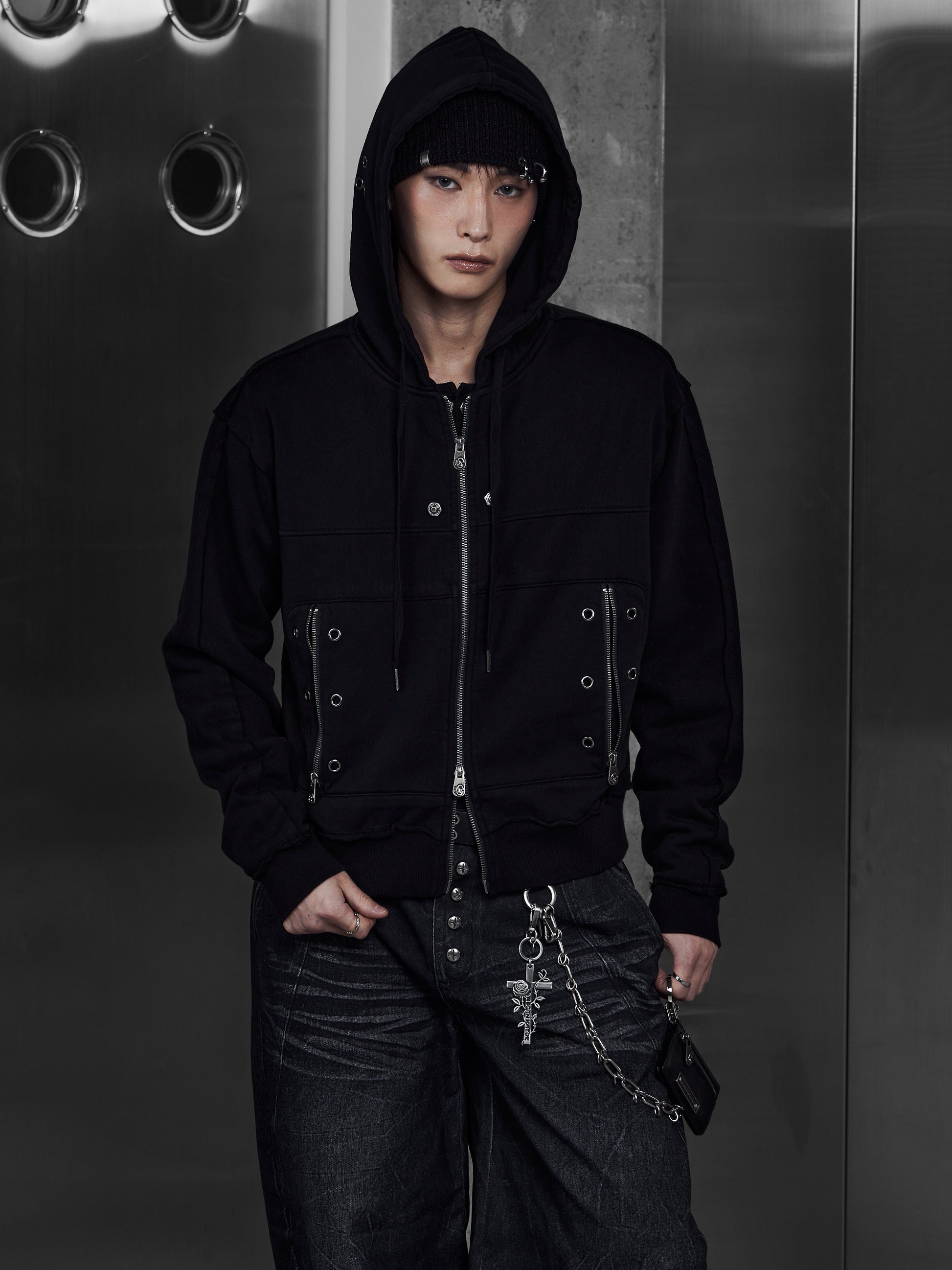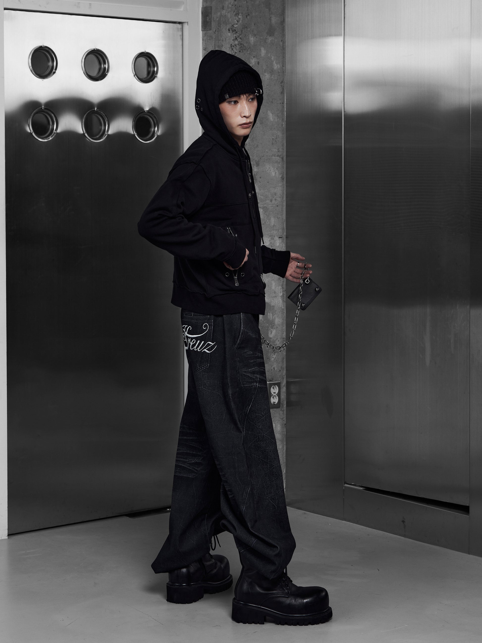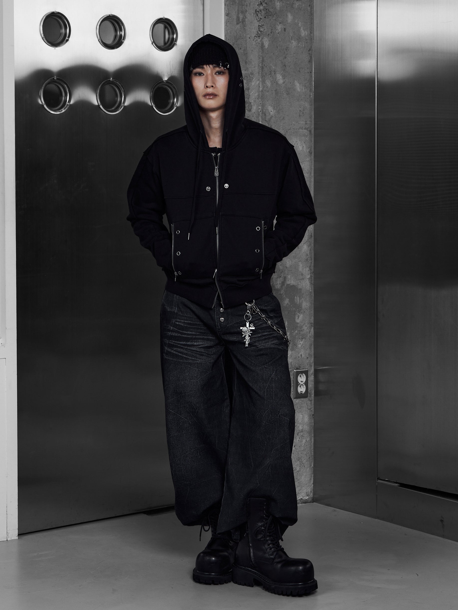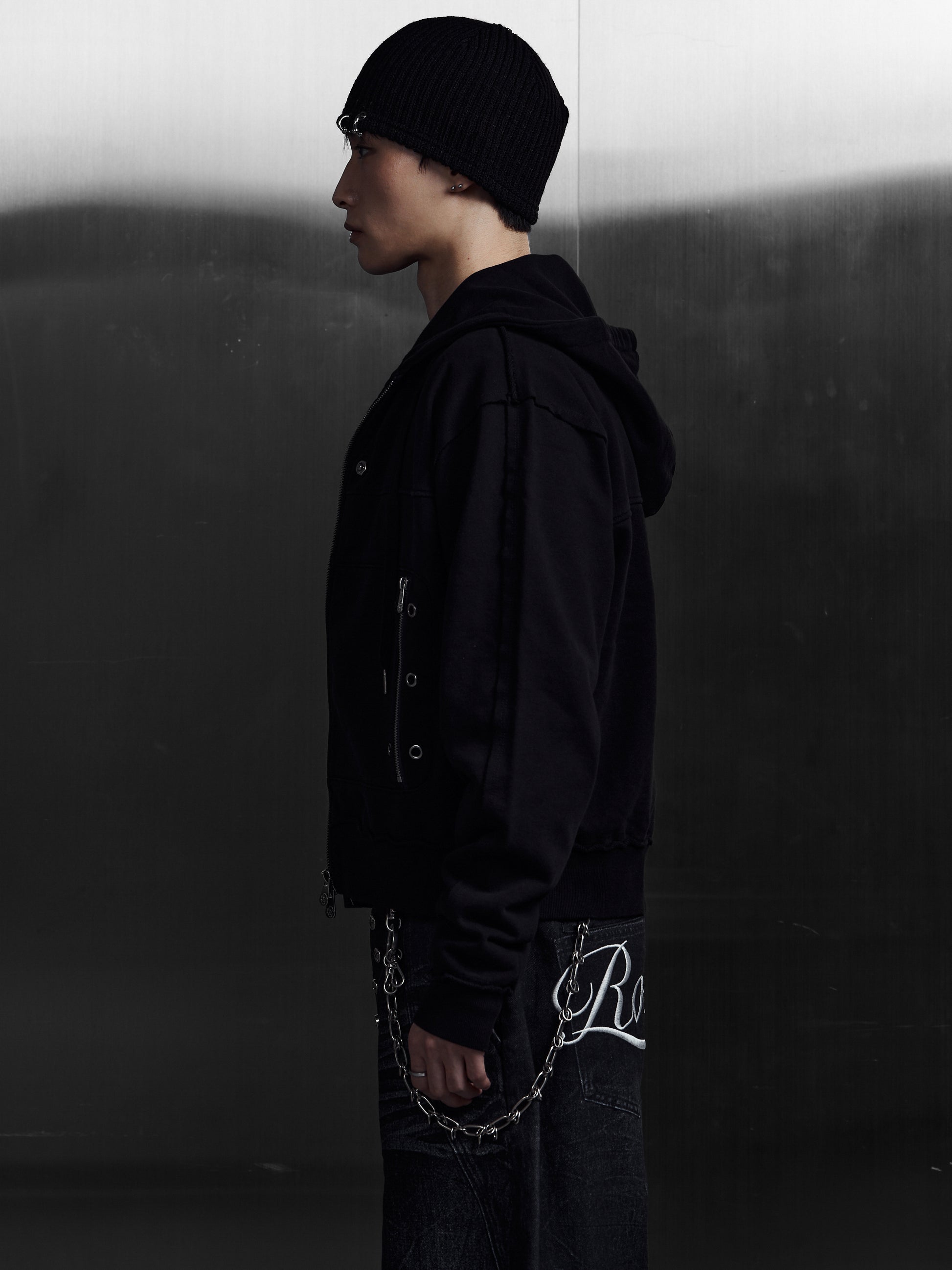 【ROSEN KREUZ】EYELET EDGE Set-Up ZIP-UP HOODIE (BLACK)