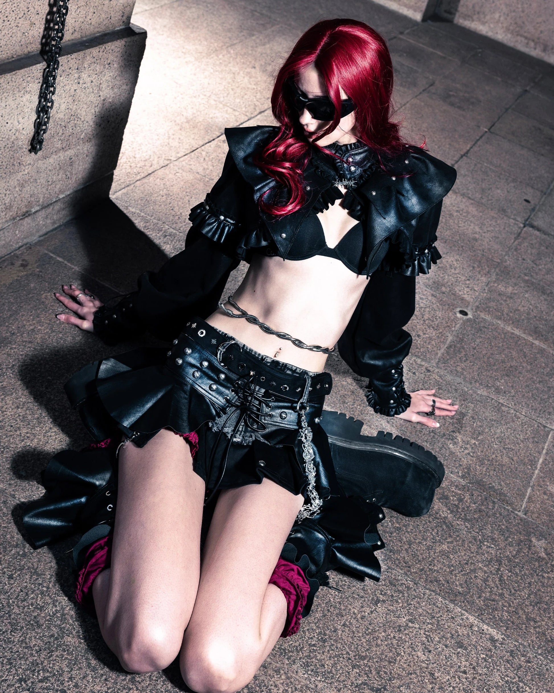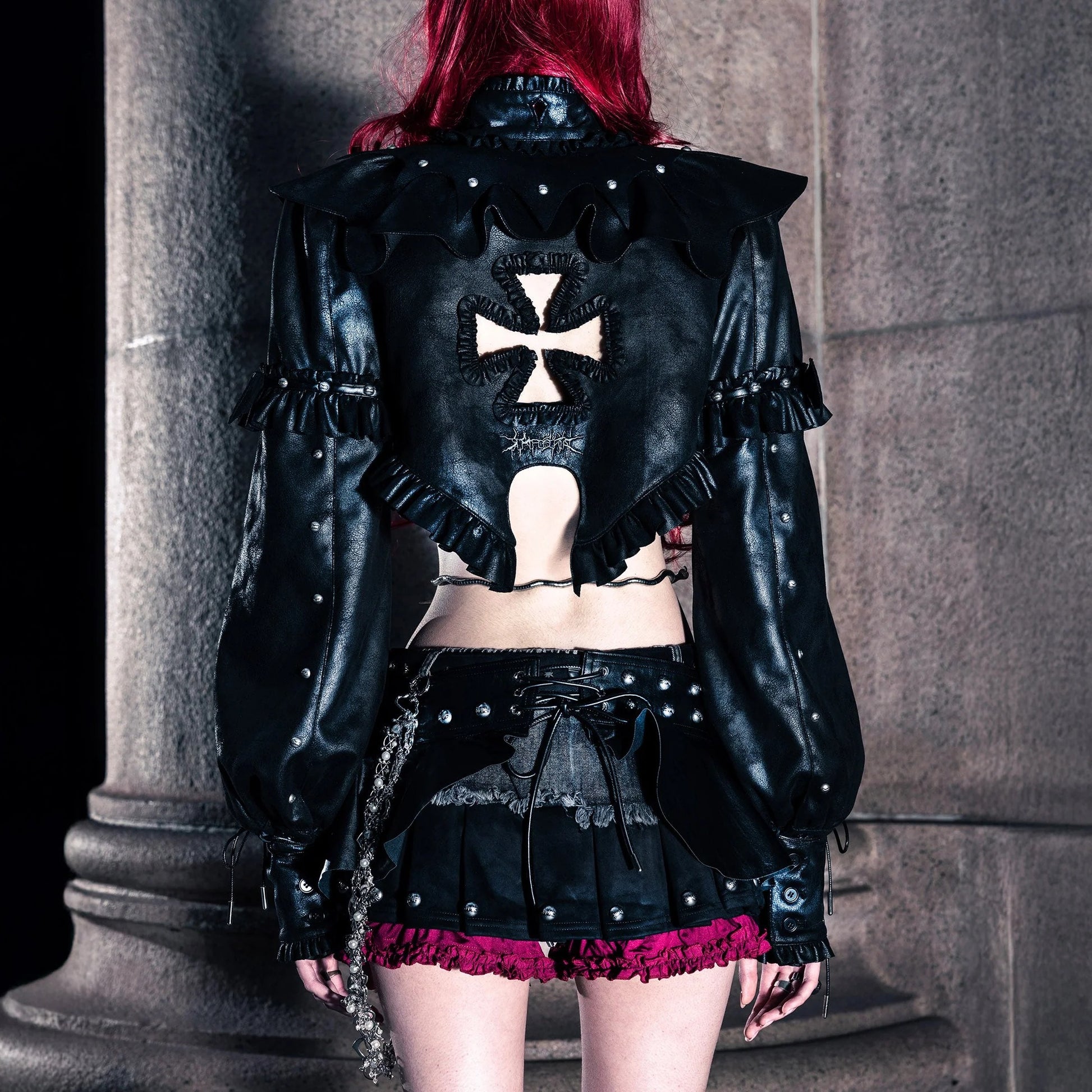 【SATSUN NIGHT】SSN V.05 TRIPLE-COLLAR SHORT LEATHER JACKET - BLACK (PRE-ORDER)
